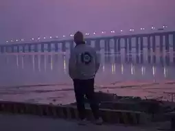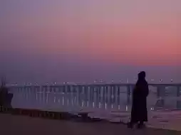 In the distance, the cross-sea bridge lies across the sea like a giant dragon, reflecting the golden sunset to create a magnificent picture. 🌉