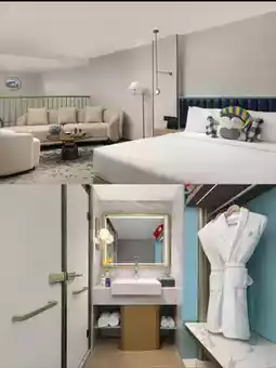 There are 52 uniquely styled guest rooms and suites, like cozy family-themed rooms and captain's cabin-themed rooms, all cleverly blending exotic charm, nautical elements, and voco's vibrant colors, paired with playful mascots to create a trendy yet relaxing retreat. The captain's cabin-themed room retains original ship features like watertight door display panels, ballast control panels, and navigation lights, with retro wooden decor and ocean-blue tones, fully immersing you in a maritime atmosphere 🚢 Plus, all rooms are equipped with renowned brand bathroom amenities, Serta mattresses, and high-end bedding with multiple pillow options, ensuring you sleep soundly to the rhythm of the waves 💤