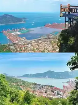 Yuntai Mountain by the sea: My hat was blown off by the sea breeze on the glass viewing platform! But overlooking Liandao Island looked like emeralds on blue velvet, cargo ships turned into toy boats, totally worth it!