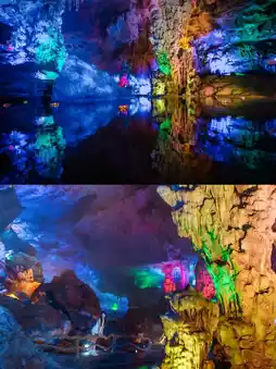 The underground world here is spectacular, with colorful stalactites illuminated by lights! 🌟 Lanterns light up the underground river, creating a dazzling and festive atmosphere. It's like traveling through time, so beautiful and dreamy! 🎉 It's recommended to wear traditional Chinese clothing for photos that will definitely stand out! 🔥