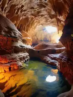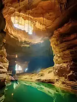 Underground river: Crystal clear with a bluish glow, perfect for a boat ride🚤