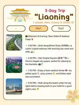 Need a relaxing trip with seaside vibes, history, and delicious seafood? 🦀✨ Liaoning (辽宁) is just a short train ride from Beijing and perfect for a slow, enjoyable escape! You can explore Dalian’s coastline 🌊 or visit Shenyang’s imperial past 🏯—your choice!