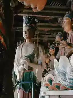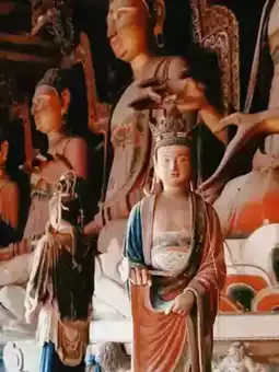🗿 The most precious treasures in the Main Hall are 23 Liao Dynasty colored sculptures, including the world's oldest, largest and most exquisite Liao Dynasty painted clay Buddha statue group "Seven Buddhas of the Past", as well as 14 Bodhisattvas and two Vajrapani. These Buddha statues are magnificent, especially the Vipaśyin Buddha in the center, which is 9.5 meters tall.