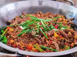 🍜 Lunch at “Kedu Town”: dry pot beef + salted pickled vegetables