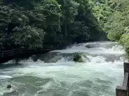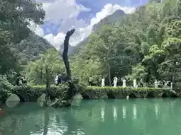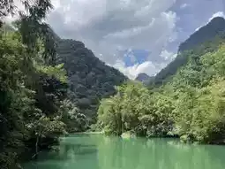 Another highlight of Xiaoqikong is Wolong Pool. Its jade-green waters are serene and deep, reflecting the surrounding mountains and forests, resembling a sleeping dragon coiled in the area. The crystal-clear pool captivates visitors with its tranquil beauty.