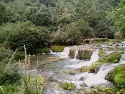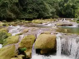 The 68-tiered waterfalls in Libo's Small Seven Arch Bridge area present a remarkable karst landscape wonder. Crystal-clear waters cascade through dense forests over moss-covered rocky riverbeds, forming dozens of small waterfalls and deep pools in layered, harmonious progression. The water alternates between rushing torrents and gentle streams, complementing the lush vegetation on both banks to create a dynamic and exquisite natural painting. Visitors can walk along the pathways to observe this masterpiece of nature up close, experiencing the awe-inspiring work of natural artistry.