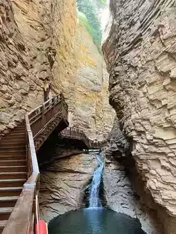 2️⃣ Spectacular Zhangshi Rock Formations: Hard red quartz sandstone and shale have been sculpted by geological movements over millions of years, creating cliffs and gorges stretching for tens of kilometers. Peaks rising 1,500-2,000 meters above sea level stand tall, with sheer cliffs showcasing nature's craftsmanship—an ideal geological classroom.