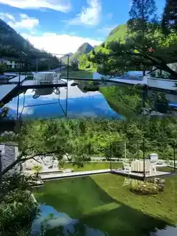 - Facilities: There is a tea room with a Zen atmosphere🍵, an old tree root tea table paired with handmade pottery🏺. The housekeeper brews fresh Lichuan black tea, super cozy~ Midway up the mountain is a starry hot spring pool✨, where the water reflects the starlight at night, creating an amazing ambiance💫!