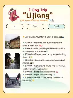 🔹 2:00 PM – Explore Lijiang Old Town, full of tea houses & traditional music. 🎶🏮