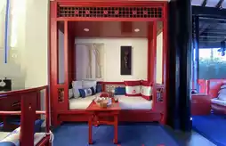 5. The Naxi-style courtyard has a traditional appearance, while the interior is a modern facility with exotic charm. The villa room type here does not have obvious boundaries between the bedroom, living room, and bathroom. When you push the door in, the bedroom is in the middle, facing the snow mountain. On both sides of the wing room, one is the bathroom space and the other is the study room. There are partition doors that can be opened or closed freely to ensure that each space is independent and private.