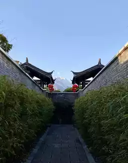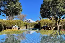 3. The most beautiful moment of staying at the hotel is that whether you are secluded in the villa or walking in the garden, you can see different moments of the Jade Dragon Snow Mountain. In the morning, the golden light shines on the top, and at sunset, it is dim and warm. Sometimes it is hidden in the fog, and sometimes the top of the mountain is full of clouds.