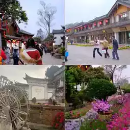 📍 Lijiang Old Town: Over 800 years old, this ancient town features rare architectural styles and traditional houses. Along the streets, you'll find numerous shops and souvenir stores. At the entrance, there is a large waterwheel.