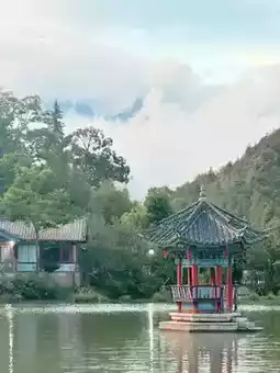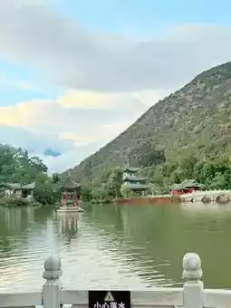 #Get a discount without relying on luck Black dragon pool or Heilongtan in Chinese is a public park and historical site located not far from the old town of Lijiang. What makes this place special is that you can see the Jade Dragon Snow Mountain. However, on the day we went, there were a lot of clouds and fog, so it was hard to see. Normally, the entrance fee is 50 yuan per person. We came in the evening and didn't see the gatekeeper, so we didn't pay the entrance fee. You can walk around and take pictures here. The Black Dragon Pool is hundreds of years old. There is also a cafe inside. This is another place I recommend if you come to Lijiang. It's a pity that if the sky were clear, the view of the Jade Dragon Snow Mountain would be even more beautiful. I'll come back again when I have a chance. 😍
