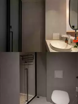 Voice-controlled systems (lights/curtains/AC), four-part bathroom with floor heating