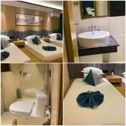 The bed is quite hard, the air conditioner is cold, the shower is very strong, and the bathroom has a separate wet/dry area, but it is small.