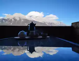 Follow the private trail shared by the host: pass through the pine forest from the B&B’s back door, and reach the secluded viewing platform of Wangu Tower in just 20 minutes. Watch golden rays pierce the clouds, casting a divine glow on the snow-capped peaks, as prayer flags chant in the wind for millennia.