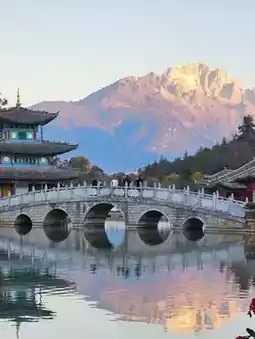 Heilongtan Park, also known as Black Dragon Pool Park, is a must-visit spot in Lijiang. Located just a few minutes' walk from Lijiang Old Town, the park's highlight is its crystal-clear pool that perfectly reflects the majestic Jade Dragon Snow Mountain—truly postcard-worthy scenery! Inside the park, you'll find a white bridge, an ancient Chinese temple, and a traditional pavilion, all surrounded by serene and tranquil greenery. It's an ideal place for a leisurely stroll, relaxing, taking photos, and enjoying the natural beauty.