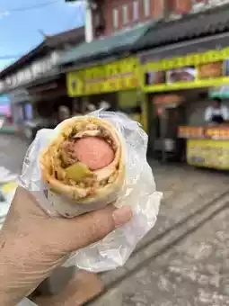 On the first day, we arrived in the evening and walked to find dinner not far from the hotel. It was drizzling, so the stone paths in the old town were a bit slippery, so we had to be careful. My first meal in Lijiang was very impressive. The restaurant specializes in mushroom hot pot, but we ordered side dishes because we had just eaten hot pot in Kunming. Everything was delicious, especially the fried potatoes and mushroom fried rice. I gave it a thumbs up.