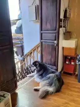 • A large dog greets you at the entrance. The cafe is on the second floor.