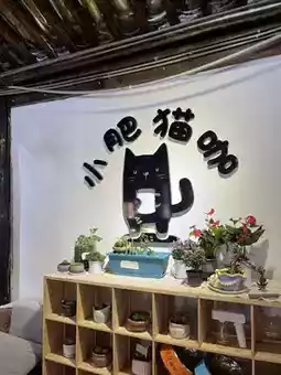 • The cafe's name likely means "Little Fat Cat Café," and the cats are truly fat.