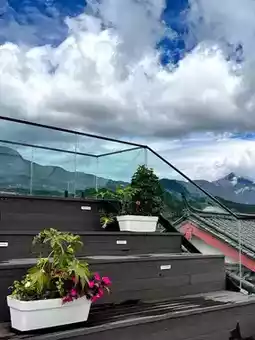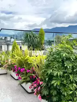 If you want to embrace a broader nature, head to the rooftop terrace! It looks like a spilled palette of plants, with the fresh green of ferns, the rosy pink of flowers, and the deep green of trees weaving a vibrant life. Against the backdrop of distant mountains and clear skies, just find a corner to sit, breathe in the scent of grass and wood, and all your fatigue will be soothed away.