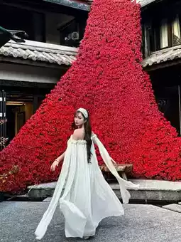 A whole wall of rose flower waterfall 🌹 at the entrance
