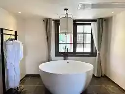 Step through the door into a warm space built with natural wood tones. Without excessive decoration, the rustic texture instantly soothes restlessness. The lobby is a versatile space: during the day, it’s a study filled with the aroma of coffee; in the afternoon, a living room overflowing with tea fragrance; at night, it transforms into a cozy little bar where you can enjoy a drink.