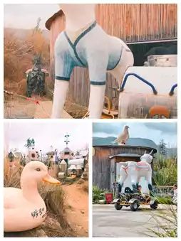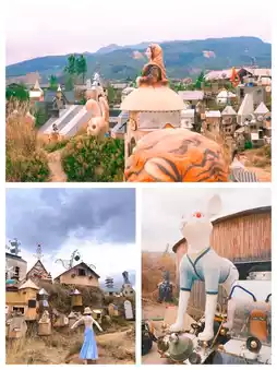Push open the rusty iron gate and it feels like stepping into a Studio Ghibli animation set! 🎨 Artist Qiao Xiaodao created over 30 imaginative installations using old cars, tires, and wooden boards: a steam-emitting treehouse café ☕️, a carousel made from a tractor 🎠, a working tank slide 🛡️... The best part is the "Castle in the Sky" you enter by climbing a ladder—standing on the suspended wooden platform, you get a panoramic magical view of the entire Wilderness Kingdom! 📸