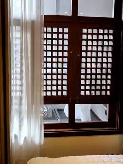 The rooms are full of surprises: wooden lattice windows exude rustic charm, soft paper lamps cast warm light, and opening the window reveals lush greenery, embracing both the tranquility of the ancient town and the freshness of nature 😌. Soaking in the bathtub with a copy of Traveler magazine by your side, all the fatigue of the journey melts away in this moment ✨.