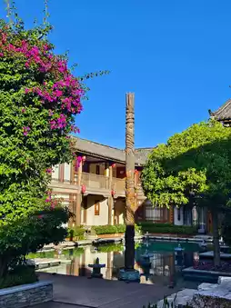At Boxinyunshe in Lijiang Ancient Town, flowers and plants fill the entire courtyard