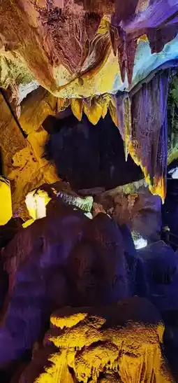 Kongshan Baiyun Cave is located in Shannantou Village, Xishu Town, Lincheng County, Xingtai City, Hebei Province. It is a national 4A-level scenic spot and a national geological park, known as the "Number One Cave in the North." Kongshan Baiyun Cave was formed 500 million years ago during the Middle Cambrian period. It is the largest karst cave at the same latitude in the world, with a total area of over 4,000 square meters and a tour route length of 4 Chinese miles. The cave maintains a constant temperature of 17°C, making it suitable for visits all year round. It is divided into five main halls: "Human World," "Heaven," "Underworld," "Dragon Palace," and "Maze." The cave features more than 150 scenic spots including stone curtains, stalagmites, stone flowers, and underground rivers. Among them, six spectacular sights such as the "Sky-Supporting Jade Pillar" and "Jade Hairpin Facing Silver Bottle" are classics, brilliantly illuminated by colored lights, showcasing exquisite craftsmanship and dazzling colors.
