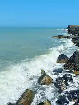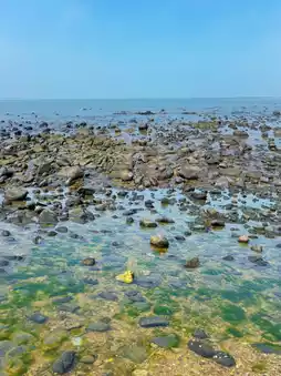 The black-brown volcanic rocks are magnificent, and this is a great place to go tidepooling. After the tide recedes, there are many clams and small crabs on the beach. Bring a small shovel and bucket to collect them all💯
