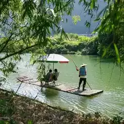 Gliding down the Li River on a bamboo raft feels like drifting into a traditional Chinese ink painting — those misty karst mountains, the mirror-still water, fishermen quietly tending their nets… it all feels too beautiful to be real.