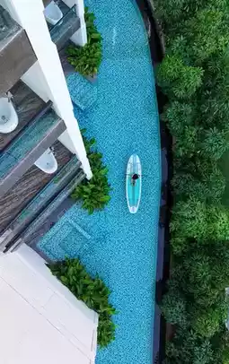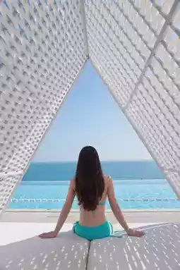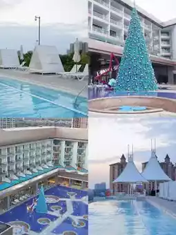 🍃 Environment: The hotel is mainly decorated in blue, 🩵 which matches the sea. The overall design is high-end, luxurious, stylish, and elegant. The hotel has a water park, an infinity pool, 🏊 an outdoor pool, a gym, 🏋️♀️ a conference room, and a multi-function hall, which can be used for various events or weddings.