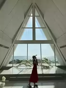 Sunshine, blue sky, sea, infinity pool, private beach🏖️, white chapel by the sea, quiet and elegant, very photogenic! There are small animals for children to play with in the hotel, such as little white rabbits, which are also very cute!