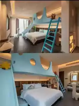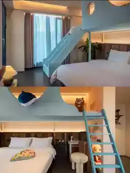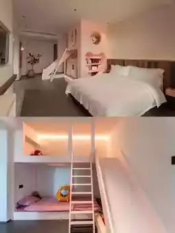 🌵 Parent-child room has a slide ball pool and bunk bed, very suitable for children to stay, the oversized orange bathtub every shot is beautiful
