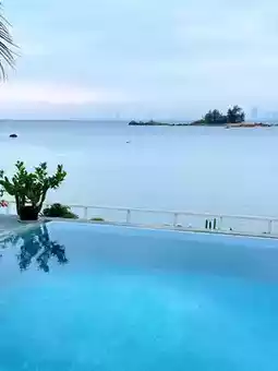 1️⃣ Insta-worthy Infinity Pool: Tiffany blue waters merge with the sea, breathtakingly beautiful at sunset