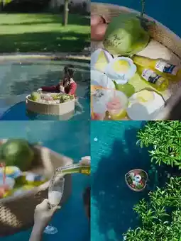 Floating pool afternoon tea and fresh coconut juice are both delicious and Instagram-worthy!