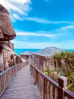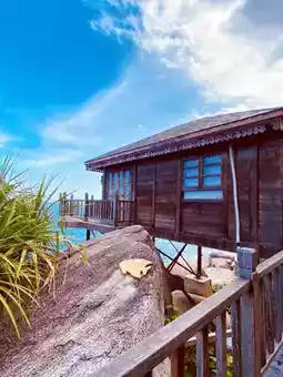 Sanya Boundary Island Fishing Club🏝 Bali Vibes Series🌻⏎⏎🌟🌟🌟Having visited Hainan five times, Boundary Island ranks in my top three recommendations. The only hotel on the island is called "Sanya Boundary Island Fishing Club." Although the facilities are a bit dated and the location isn't the most convenient, the moment I stepped into the room and saw the ocean view, none of that mattered anymore—it was absolutely breathtaking! The unobstructed views let you watch the waves🌊 and sunrise/sunset right from your room, making it the ultimate vacation spot⛱.⏎⏎🏖🏖🏖We visited during the off-season, so it wasn't crowded. Based on reviews, the best views are in Zone E, especially rooms E516 and E517, which offer 270-degree panoramic views. To secure our preferred room, we waited at the hotel lobby by 11 AM. Unfortunately, the guests in the two best-view rooms were extending their stay, so we settled for E512. After some exploring, we found that E512, E513, E515, E510, and E511 all face the sea with stunning views. The extra vegetation and rocks near the entrance actually added to the Bali-like resort vibe.⏎⏎🏨【Room】We booked the "Island Ocean View Villa," now renamed "Rear Sea Cliff Wooden Villa King Bed Room," priced at 720/night, which includes Boundary Island admission🎫 and round-trip ferry tickets (normally 150/person—pretty steep👀). ⚠️Staying two nights at 490/night is a better deal.⏎⏎🚘【Transport】Boundary Island is located in Lingshui Li Autonomous County, Hainan. We rented a car from Sanya and navigated to "Boundary Island Ticket Office," a 1.5-hour drive. After parking at the scenic area lot, take a 15-minute ferry🚢 to the island (operating 8 AM–6 PM). Upon arrival, the hotel shuttle will take you to your room, and staff will assist with luggage.⏎⏎🏪【Dining】The island isn’t overly touristy, but it has convenience stores, supermarkets, restaurants🍴, bars, and massage parlors. There’s a beachside BBQ with live music at night, but note that places close early.⏎⏎🚣♀️【Activities】Plenty to do: snorkeling🤿, freediving, scuba diving, jet skiing🛥️, seabed walking, parasailing☂️, stingray encounters, dolphin shows🐬, etc. Book online in advance or at local shops.⏎⏎👩🎤【Outfits】Must-haves: sunglasses🕶️, sun umbrella⛱️, straw hat, and sunscreen—it’s scorching! Swimsuits🩱 are super photogenic. Opt for blue, white, or beige dresses👗 or a tank top + shorts🩳 combo.⏎⚠️【Tips】⏎1⃣️Toiletries are subpar—bring your own!⏎2⃣️Dining options close early, and shuttle rides are required, so pack snacks.⏎3⃣️Rooms are close to the sea, so wave sounds can be loud. Light sleepers, beware! Personally, I loved being close to nature and found it amazing.