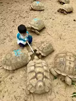 ⢠Petting over 100 land turtles at Le Tian Gui Xin Juš¢. The kidsā nervous yet curious expressions while bathing the turtles were adorable! There are also alpacas and deer chasing for food, and the kidsā playground with sand pits and slides "tricked" the kids into spending half a day...
