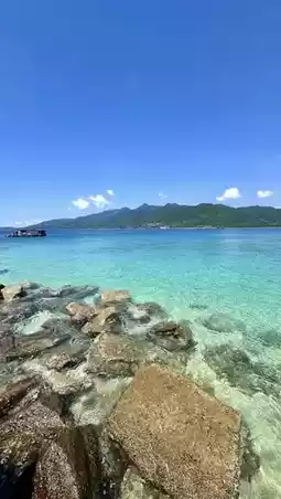 After taking the boat to the island 👉 on the left is Moonlight Castle and Ocean Theater, on the right is feeding manta rays and taking the sightseeing bus
