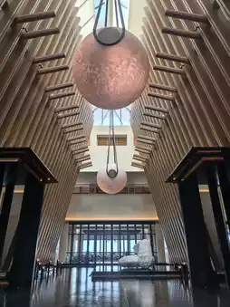 Breaking away from traditional hotel designs, the lobby here is a warm "living room"! No cold chandeliers, just architectural aesthetics with interplay of light and shadow🎨 Greenery and art pieces blend seamlessly, even an art novice like me couldn't resist turning on photo mode📸