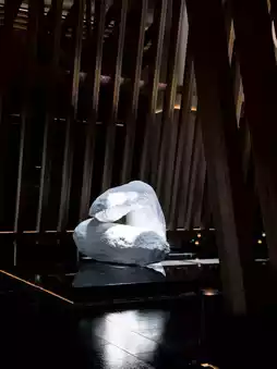 - Sunlight filters through perforated screens, casting interplay of light and shadow where wooden structures blend with soft illumination, whispering that "nature belongs in space."