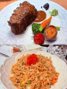 - Chinese Restaurant: The top dining recommendation! Complimentary appetizers upon seating and a fruit platter when leaving. Portions are generous—two adults and a child couldn't finish (had to pack the seafood fried rice and small yellow beef). Highlights: shrimp cakes packed with real shrimp (great value), consistently good crispy chicken, flavorful and hefty seafood fried rice. The 268 RMB small yellow beef with skin was rich in fat but identical to a breakfast dish the next day, which might feel repetitive to some.
