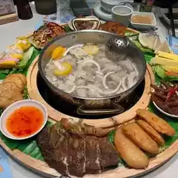 This restaurant offers fresh, thinly sliced beef with tender texture, refreshing and appetizing pickled vegetables, and rich, fragrant beef bone soup, all in authentic Hainanese style. You can grill or hotpot the beef. They also offer special pairings like beef bone soup with pickled vegetables, and grilled meat with pickled vegetable soup. Additionally, the beef balls are firm with little starch, and the taro rice is fragrant and soft. The service is warm and thoughtful; they help scald bowls, guide to parking spaces, and refill soup promptly, and also provide delicious complimentary side dishes.