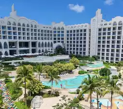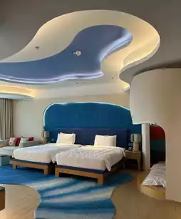 The wave-shaped dome design in the hotel lobby is absolutely stunning! Every shot looks like a masterpiece. The best part? The room balconies offer direct views of the Ocean Paradise's Ferris wheel, which becomes magical when lit up at night. Pro tip: Wear light-colored outfits to complement the blue ocean theme perfectly!