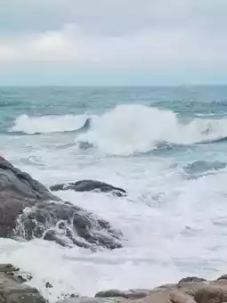 Stone Park has tall and smooth stones, many varieties, and large waves.