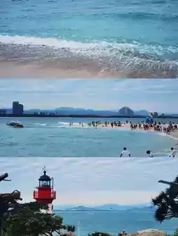 Coming against the wind and waves, the boat swayed left and right like riding a sedan chair, surprisingly no seasickness. The sea water is indeed very blue. Riding various cute marine creature sightseeing cars, traveling on the island road, the half-mountain half-sea scenery comes from far to near, then near to far again. The sea breeze passes by, the waves come and go endlessly, without rest or stop.