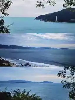 Lingshui’s Fuli Bay is relatively primitive. Wanning’s Riyue Bay and Shimei Bay are quite similar, mainly for water sports. Personally, I prefer Riyue Bay. There are many small shops on the street, coconut trees along the road, a very relaxed and casual street. Due to recent weather changes, it often turns bad in the afternoon, so there is basically no chance to watch the sunset. The sunset at Shenzhou Peninsula Lighthouse was really a coincidence; probably no one expected to see a sunset on a cloudy day. There is a fairy mountain on the sea, with the glow pouring in, brief but extremely beautiful.
