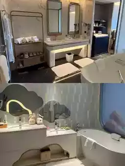 The room has a mini fridge, perfect for chilling coconut water 🥥! Free toiletries, hairdryer, even sunscreen provided (Hainan’s UV rays are intense), plus a local coconut candy gift, sweet and delicious~
